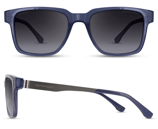 Bekende iconografie van het exterieur van de voertuigen is naadloos vertaald naar de monturen, inclusief Defender-designelementen, een exclusief hexagonaal scharnier, op maat gemaakte All Terrain-textuur op de slapen en een aangepaste oogpen aan de voorkant. Met gebruik van bio-acetaat en/of roestvrijstalen slapen die zijn gevormd om de bekende strakke lijnen van de Defender-voertuigen te weerspiegelen.